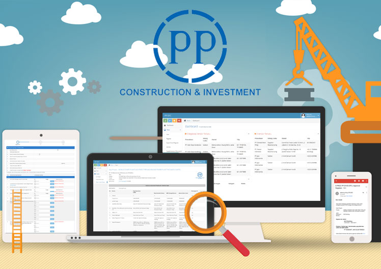 Kami bekerja merealisasikan ide kreatif PT.PP untuk membuat manajemen vendor yang digital, paperless dalam recruitment vendor. Menciptakan efesiensi dalam pengadaan tender dan dapat memantaunya setiap waktu secara realtime.